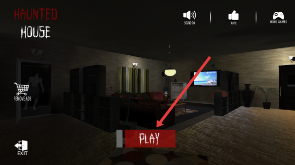 1、在Haunted-House游戏初始界面中,按照指示点击红色PLAY按钮,开启恐怖房屋冒险之旅。