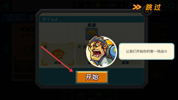 2、在关卡1.1界面,点击橙色开始按钮,正式启动首场战斗,按指引推进对战环节。