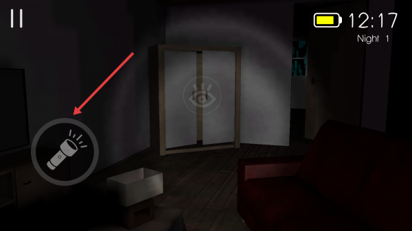 3、当身处昏暗区域时,点击左侧手电筒圆形图标,快速照亮周围环境,规避隐藏危险,持续推进房间探索进程。
