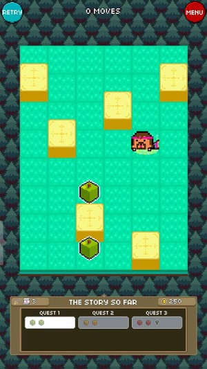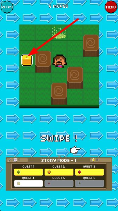 2、进入故事模式第一关,依据提示通过滑动操作,控制角色向箭头指向的树桩方向移动,尝试推动或利用其推进关卡。