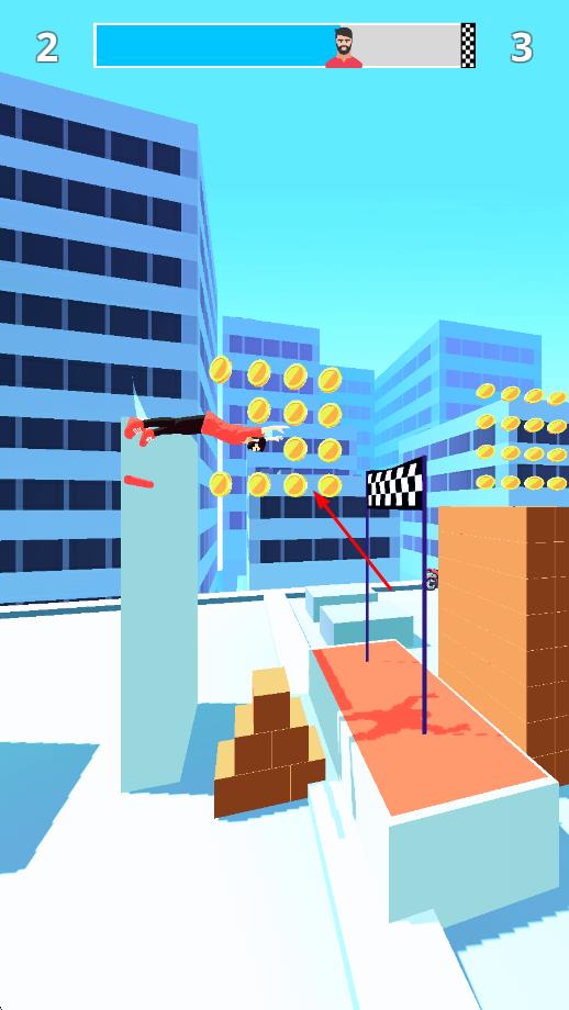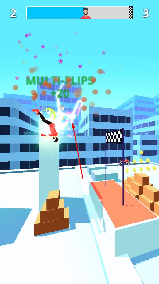 2、落地平衡技巧:翻转接近完成时提前预判落地时机,松开手指停止翻转,让角色保持直立姿态触地,落地时重心稳定就可以获得更高的评分。