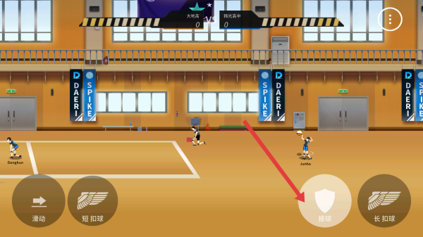3、优先升级接球、点击扣球技能,熟悉角色分工如Donghun、Junho的职责,多练习不同发球。