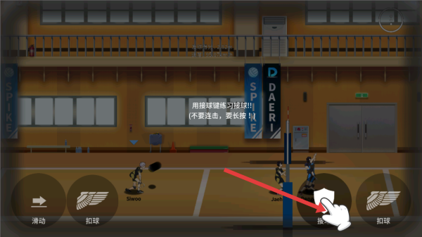 1、进入排球场,发球时等角色举球,按短扣球或者长扣球,瞄准对方场地空隙,接球看提示。