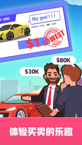 3、游戏采用3D卡通渲染风格,视觉体验轻松活泼,贴合各个年龄段的审美习惯,同时真实还原了二手车交易流程,增强了沉浸感。
