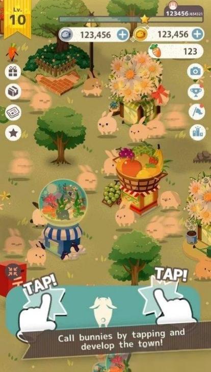 1、兔子造型多样:每只兔子都有着独特的萌点,从软乎乎的白色小兔到带有花纹的彩色兔子,满足玩家对可爱形象的喜爱,还能解锁更多不同造型的兔子。