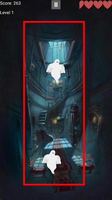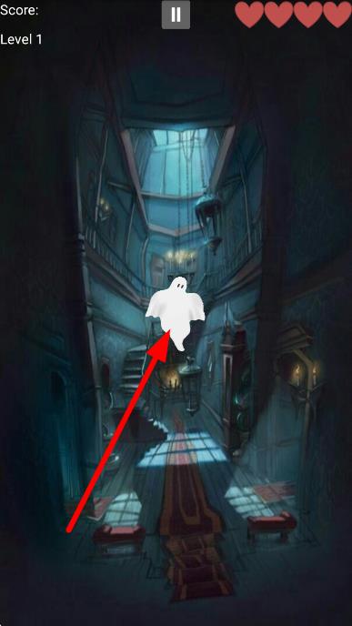 3、场景中出现多个幽灵,按箭头提示,在红色框选的区域内,留意幽灵位置,灵活操作,避免损失爱心,持续获取分数。