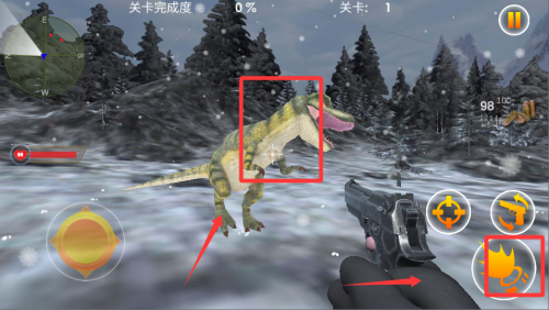 1、进入游戏后先熟悉武器操作与瞄准方式,掌握基础射击节奏,面对恐龙时保持冷静进行精准打击。