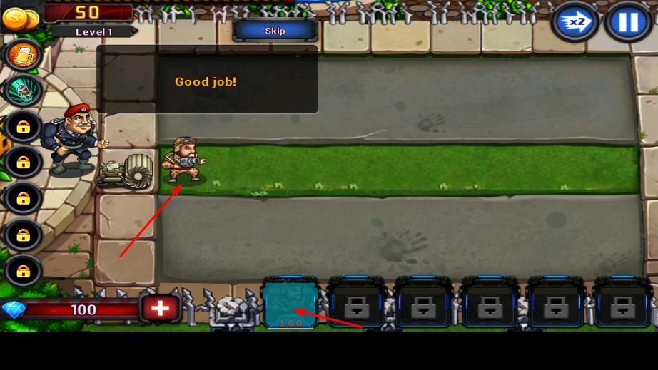 3、熟悉框架与新鲜元素:在类植物大战僵尸玩法基础上,以军队元素替换植物设定,因兵种特性带来全新体验,易上手且有新意。