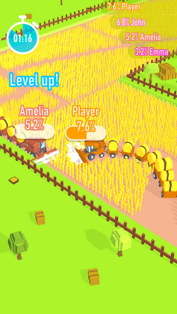 欢乐丰收大作战是一款以收割庄稼为主题的趣味休闲佳作,玩家将驾驶收割机参与闯关,完成丰富多样的任务,关卡难度由简至难逐步增强,通过简单易上手的玩法设计与对手展开竞争,在丰收的氛围中体验收割的乐趣与挑战的刺激,快来加入这场欢乐的丰收大作战,享受收割庄稼的别样乐趣吧。