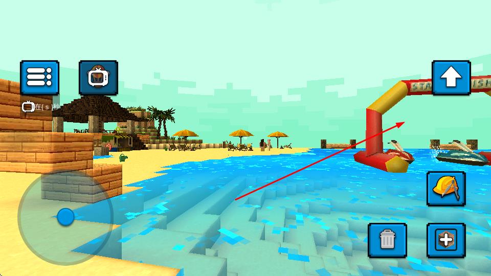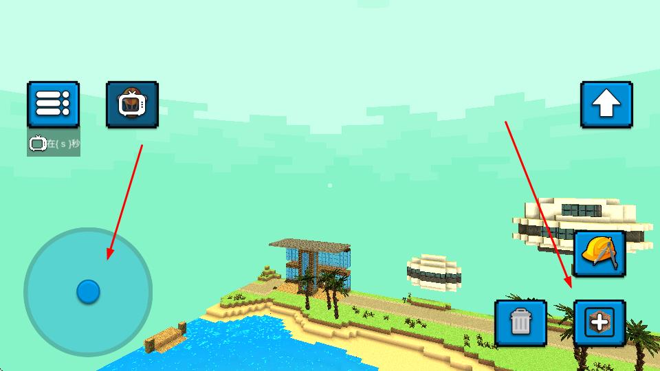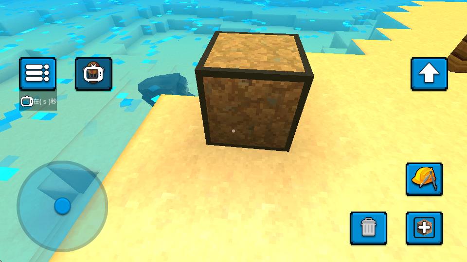 2、操控左侧虚拟摇杆移动角色,点击右侧工具按钮,可使用工具进行建造、破坏等操作。