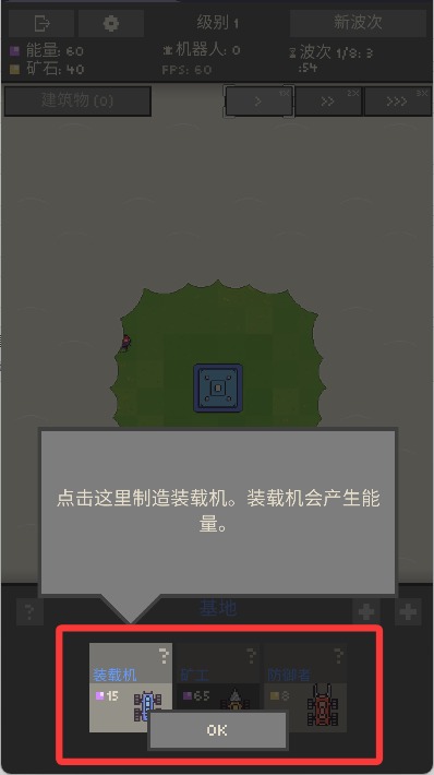 4、开始游戏后点击下方制造装载机,装载机会产生能量。