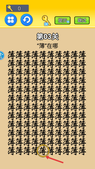 3、多玩熟悉字体差异,第3关注意簿字竹字头和薄字草字头的区别,需要集中注意力找独特结构。