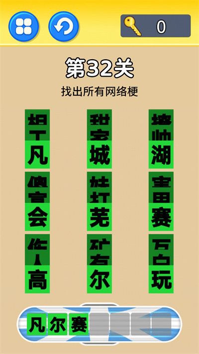 2、辨别凹字和凸字形状上的差别,有规律的寻找优先自己找练眼力,找不到时求助点击钥匙。