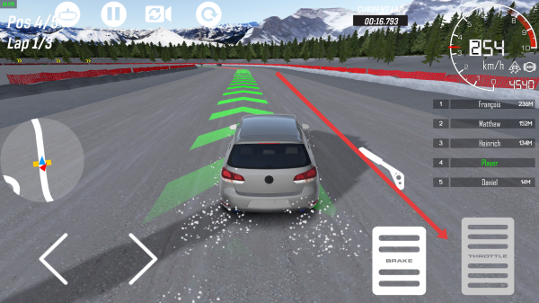 2、真实驾驶操作体验:驾驶模式操作直观且真实感强,玩家可通过屏幕按钮控制方向、加速、刹车与漂移,也可切换为加速计模式,通过倾斜手机控制转向.