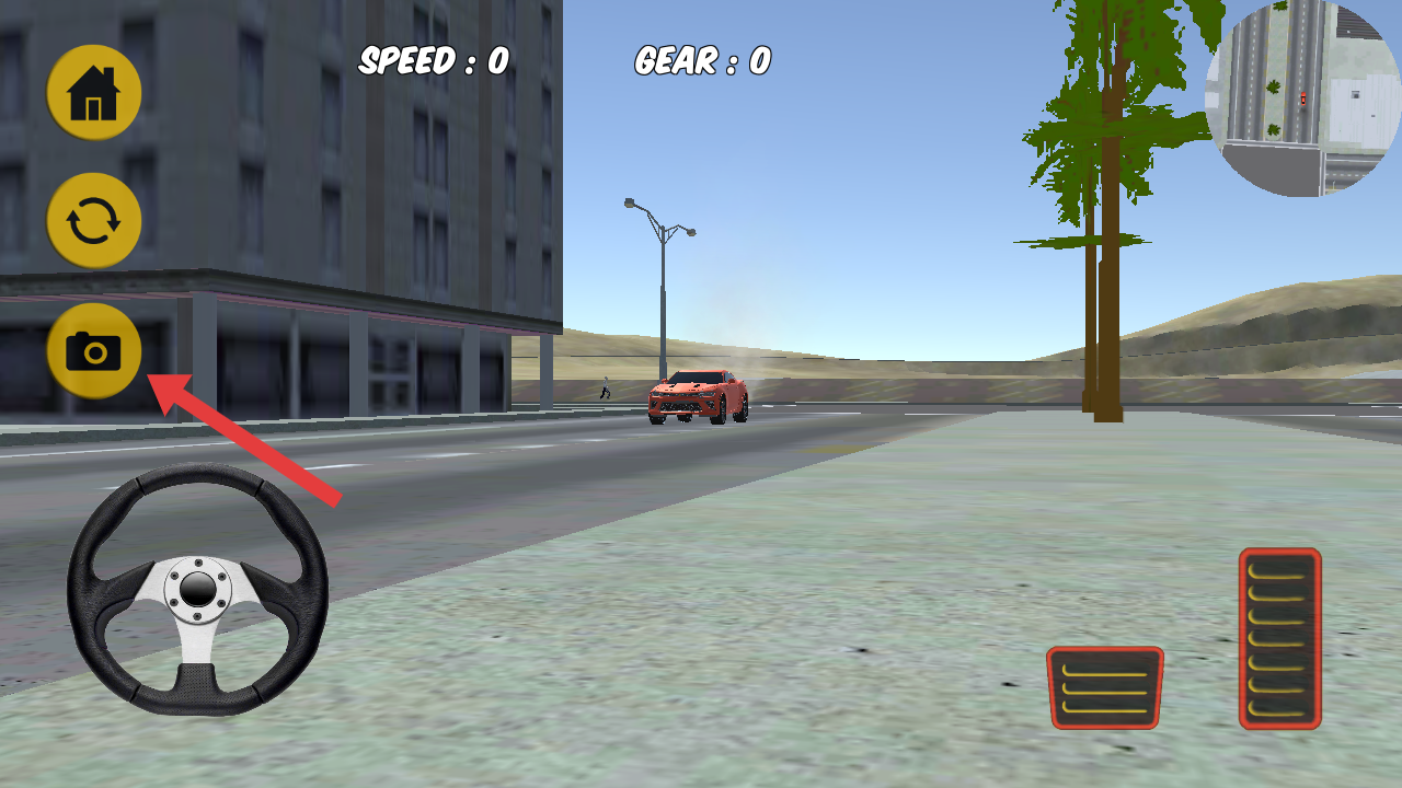 1、在游戏的初始界面需要驾驶操作,可以点击左侧相机的图标来进行切换驾驶的视角。