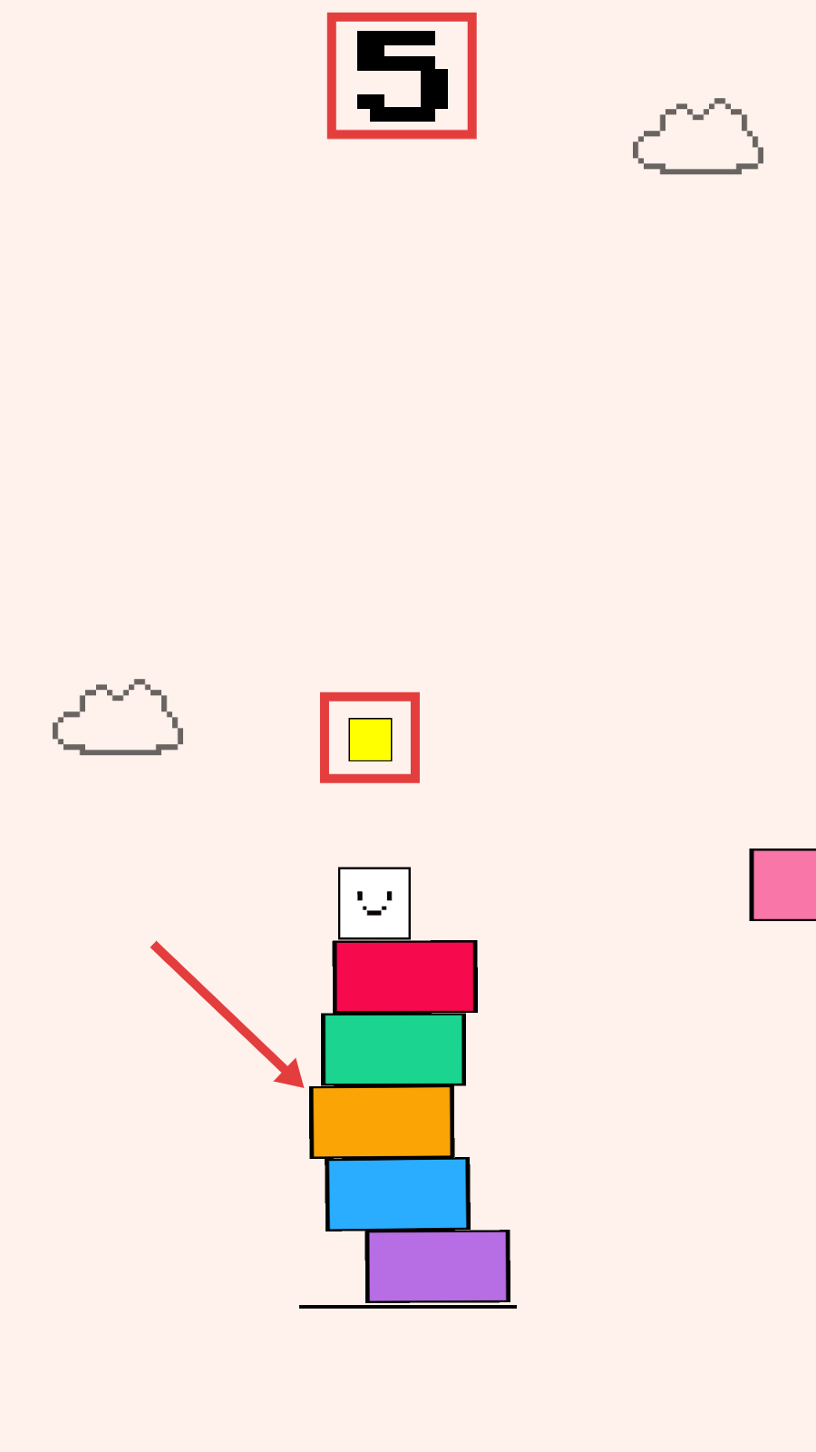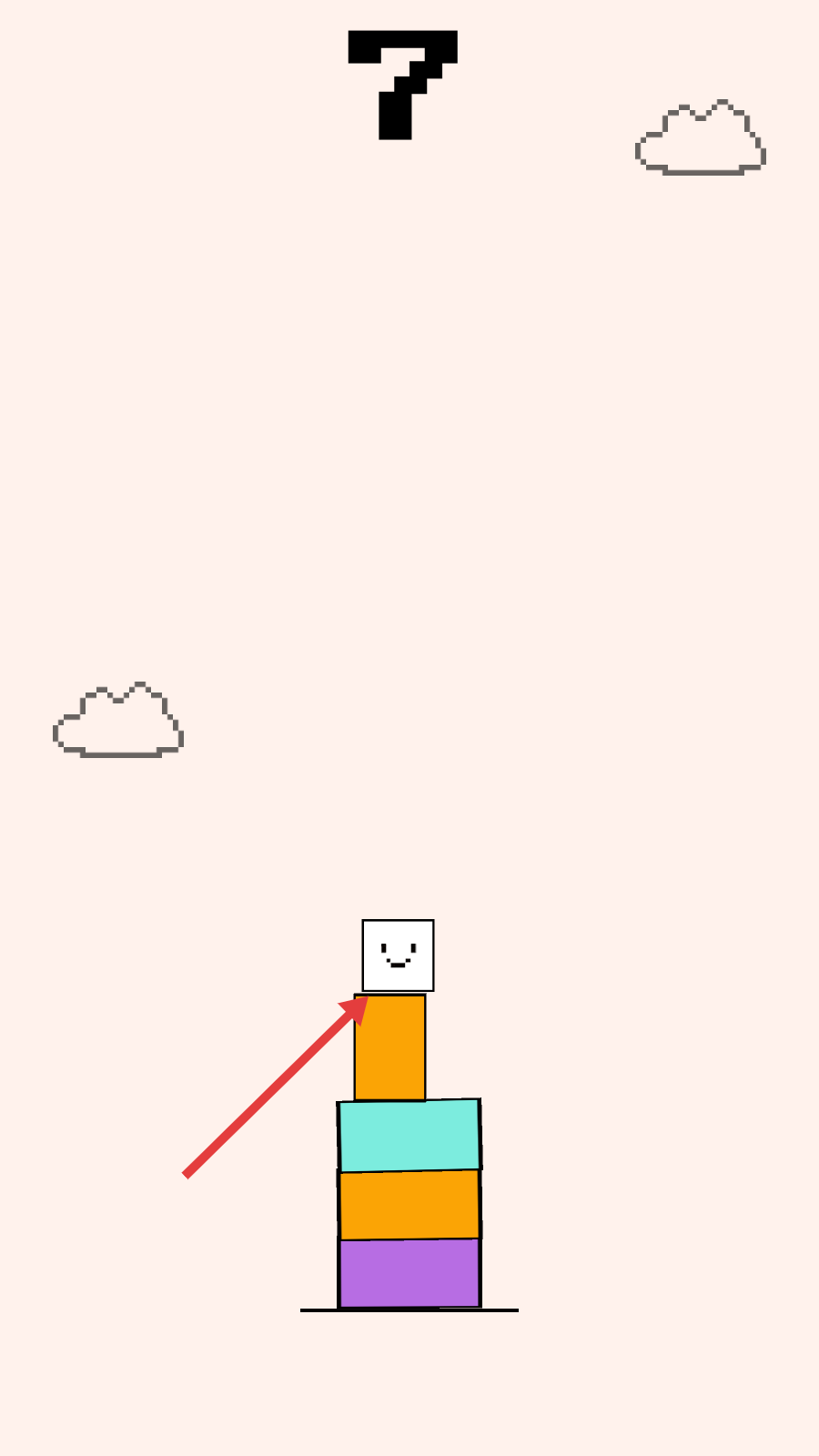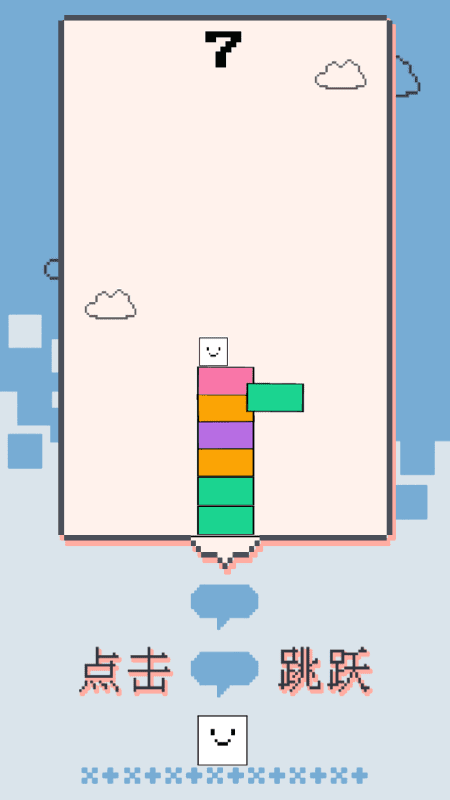 2、塔体建设挑战:通过持续成功跳跃堆叠新平台,每次成功增加高度改变平台排列模式。