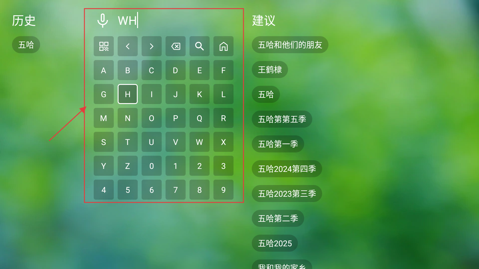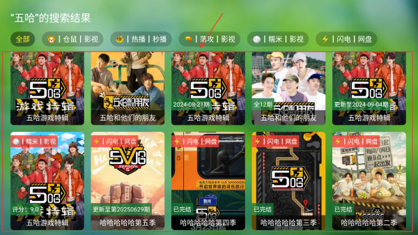 2、在搜索页面,输入要看的电视名称,如五哈进行搜索。