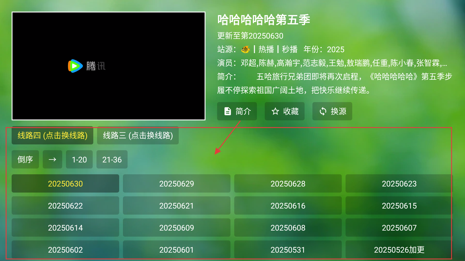4、进入播放页面,选择要看的集数、播放线路等,即可进行观看