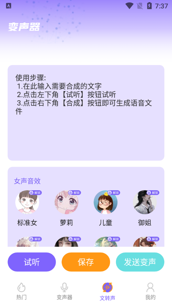 2、简单易用的操作界面:该软件的操作界面简洁明了,易于上手,即使是初学者也能够轻松上手。用户只需要选择合适的音色,即可快速生成自己想要的语音效果。