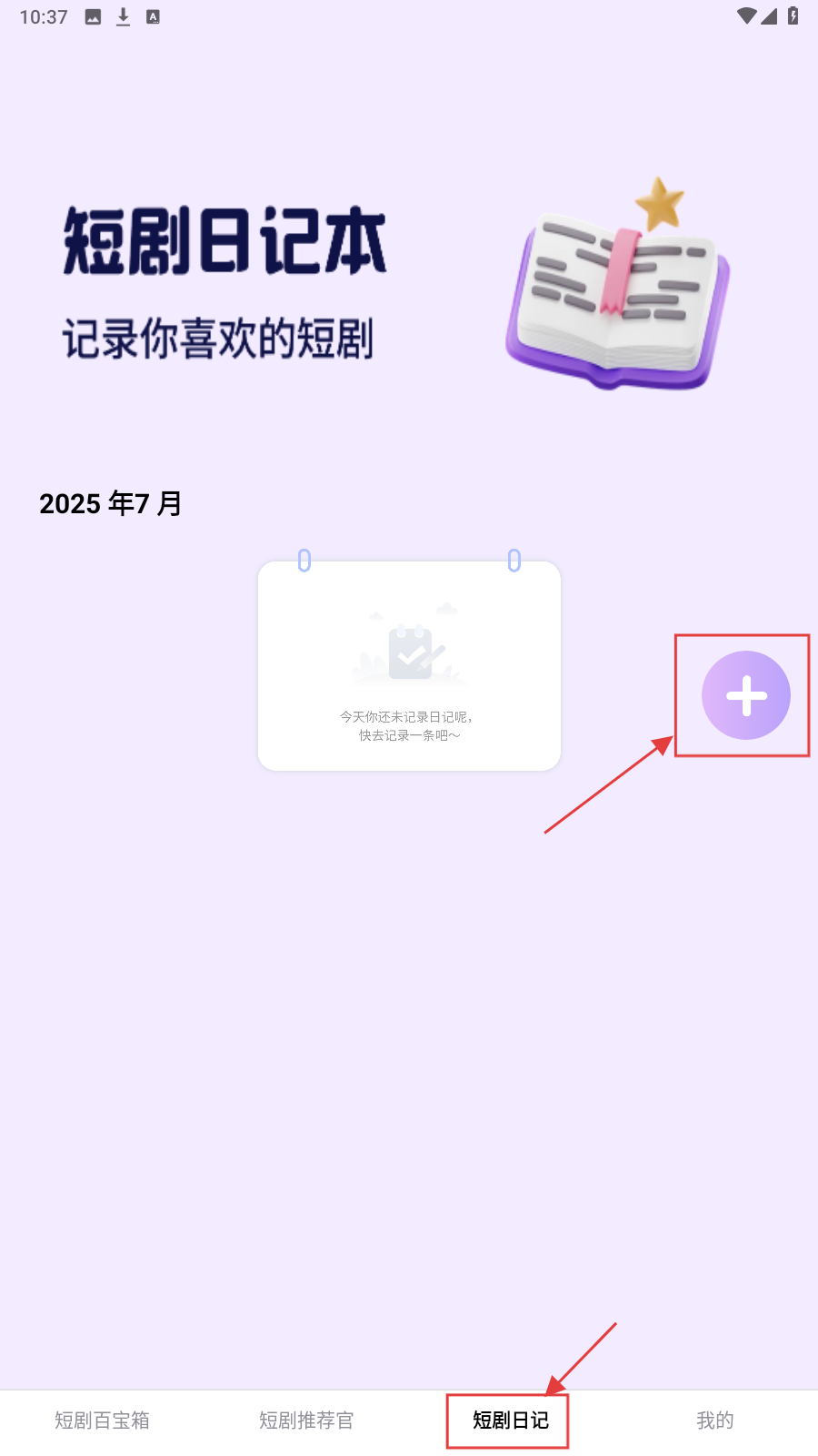 3、进入【短剧日记本】页面,点击【+】按钮。