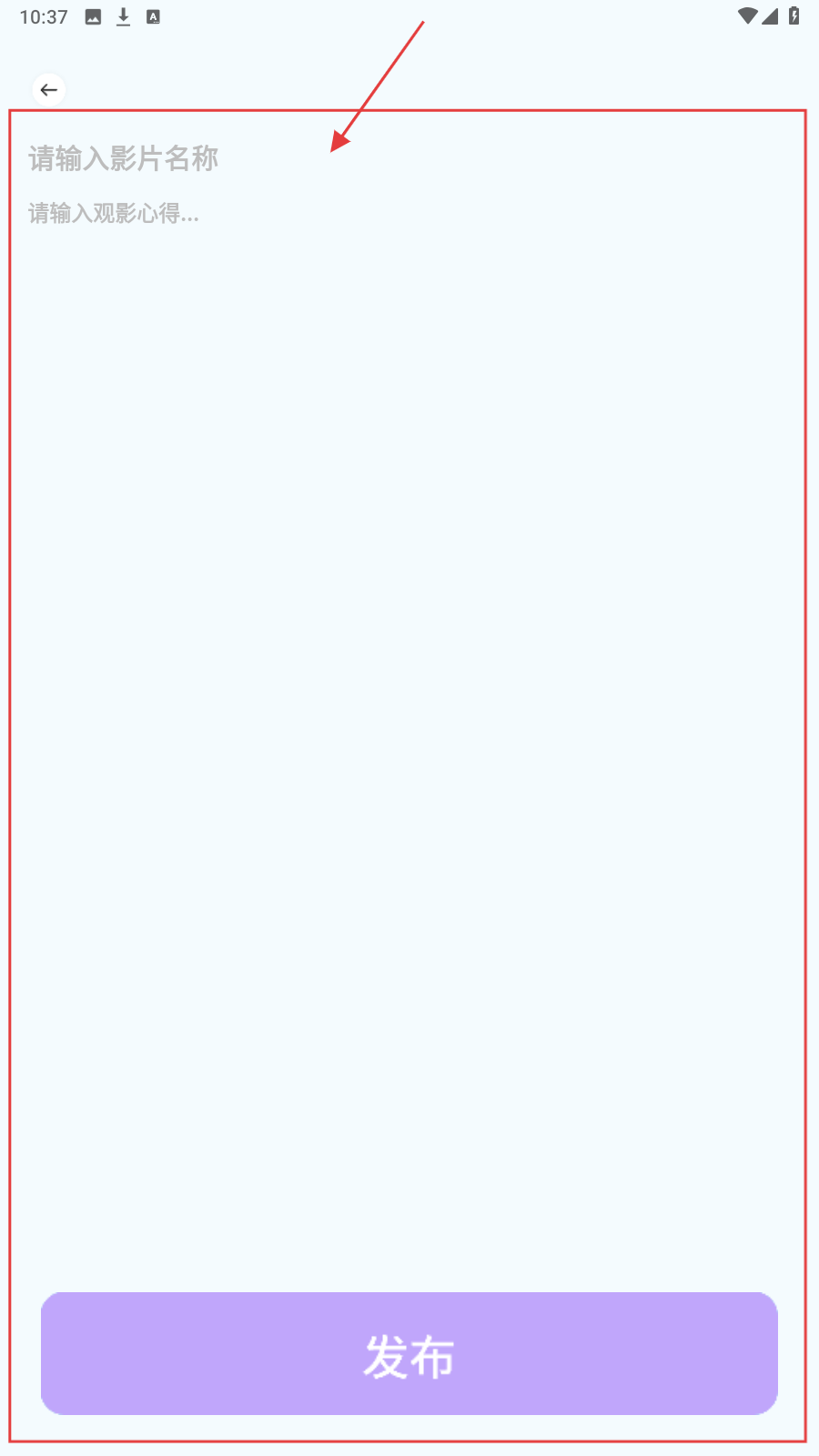 4、创建新的日记,记录影片名称以及观影心得,点击【发布】进行分享。