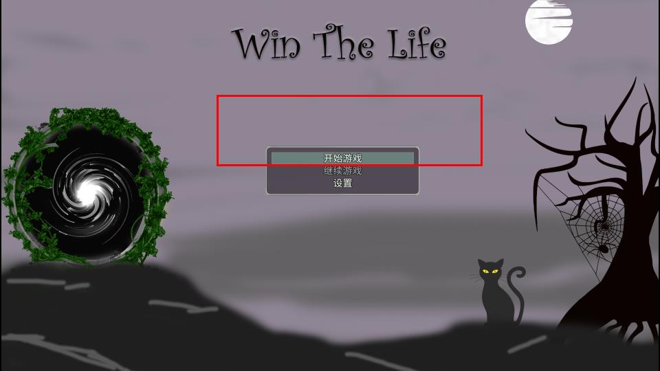 1、看到Win The Life标题与神秘场景后,点击开始游戏选项,这是踏入暗黑风格冒险的关键操作,开启独特的生命挑战之旅。