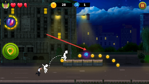 3、道具解锁体系:收集的金币可兑换不同功能道具,有能短暂浮空的喷气背包,也有增加攻击力的警棍,皮肤则涵盖复古警服、潮流卫衣等,丰富角色形象。