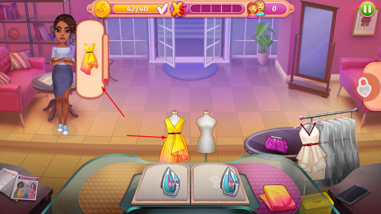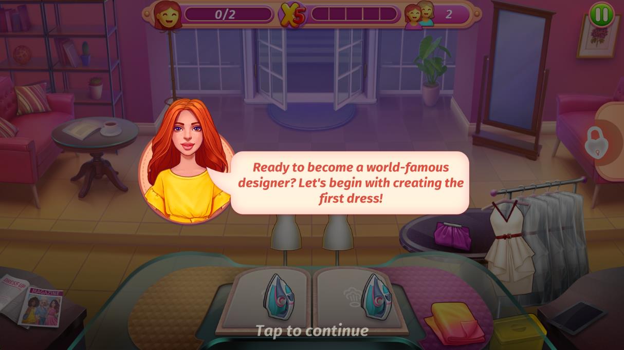 1、进入游戏后,在设计界面选择面料与款式,搭配颜色和配饰,完成第一件服装创作,为时装秀打下基础。