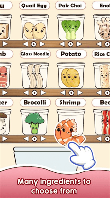 2、顾客需求个性应对:有各种各样的动漫顾客,每位顾客都有不同的口味偏好,玩家需要根据他们的订单需求制作麻辣烫,让互动更具针对性,增加了挑战性。