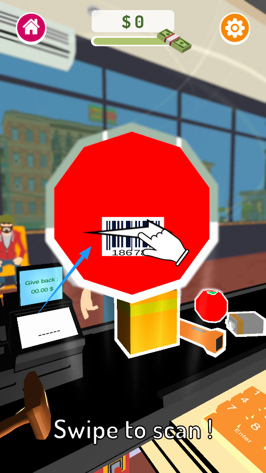 3、操作简单易上手指南:通过手指点击完成扫码、结算等操作,模拟真实收银动作,逻辑简单,新手无需复杂学习,掌握核心玩法,轻松的开启收银挑战。