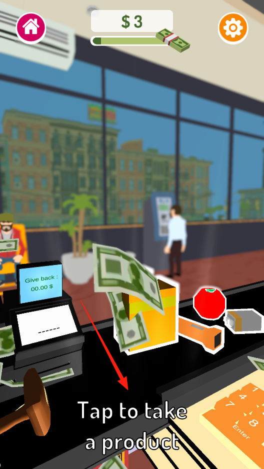 2、操作便捷随时游玩:手指点击即可完成所有操作,没有复杂按键,适合碎片时间,无论是等车还是休息,都能打开完成几局收银,轻松又解压。