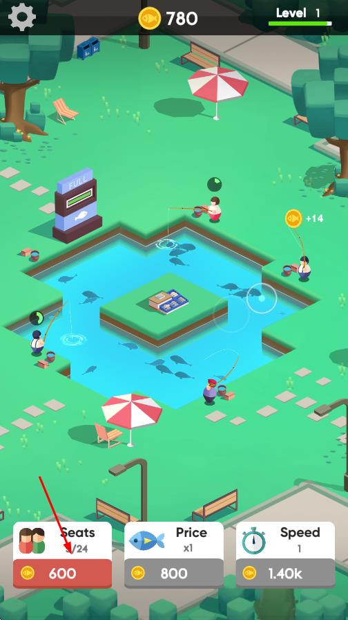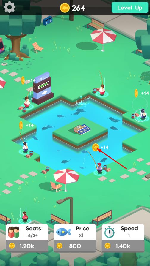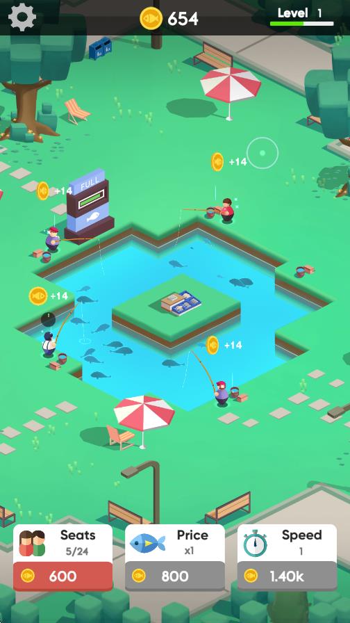 2、投放鱼苗、虾苗等水产,定时投喂管理,同时接待垂钓客人,收取费用并解锁更高级的养殖品种。