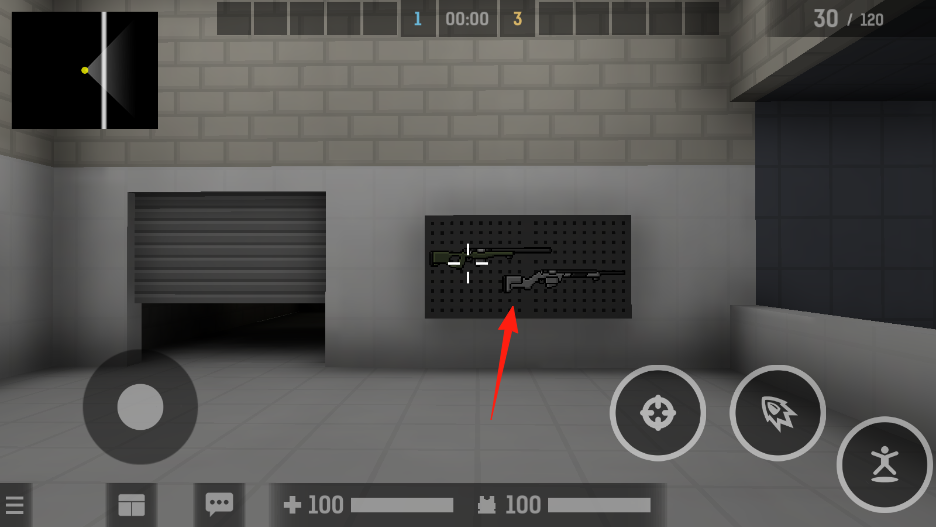 2、地图探索策略:探索时沿墙壁移动,利用方块地形的拐角观察前方,避免贸然进入开阔区域被埋伏,优先搜索隐蔽角落,既能找到武器也能提前发现敌人。