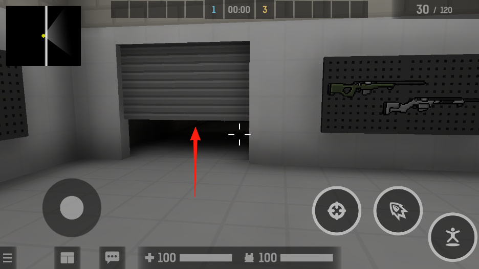 3、出卷帘门后,遇敌人用右侧按钮射击,配合火箭技能清场,注意血量护甲,利用掩体游击。