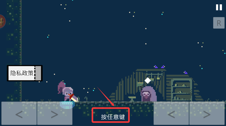 1、启动游戏后,轻触屏幕任意位置,即可进入复古像素风格的冒险世界。
