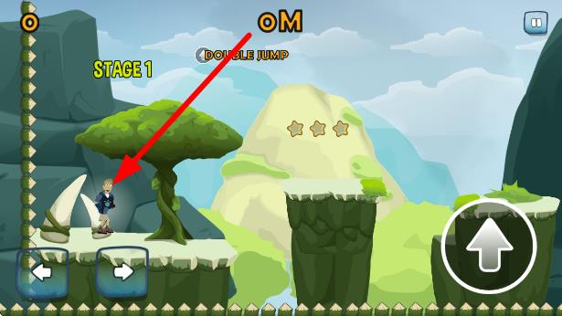 2、操控角色移动,利用左右按键控制方向,遇到障碍时,结合提示,点击跳跃按钮跨越,探索场景收集星星。