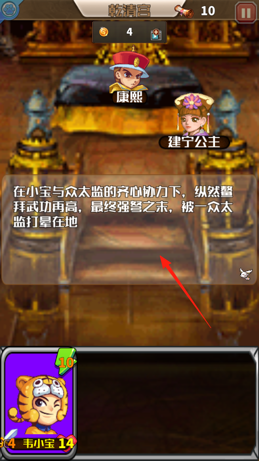 3、查看战斗结果,解锁剧情,了解击败鳌拜过程,推进故事,与康熙建宁公主互动,体验剧情推进机制。