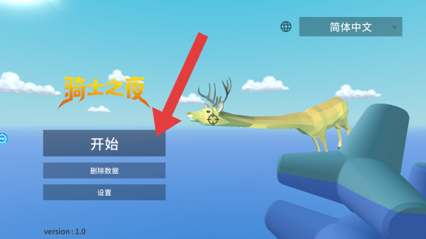 1、有开始、删除数据、设置的按钮,语言为简体中文,画面中有鹿的形象,点击开始方可进入。
