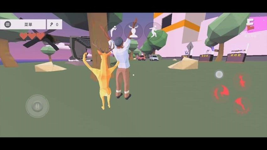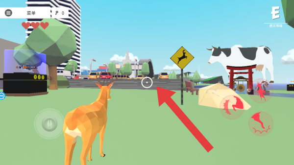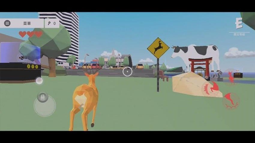 2、能看到鹿、城市场景、奶牛、建筑、道具等元素,属于独特的搞怪、开放世界冒险风格场景。