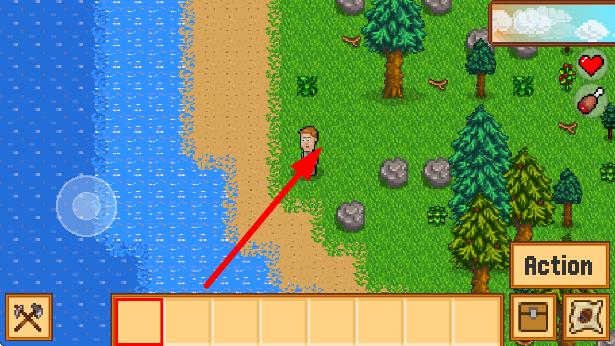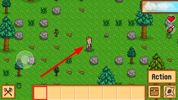 2、利用虚拟摇杆或点击屏幕控制移动,靠近树木、石头,可采集资源,为后续建造、生存做准备,使用工具互动。