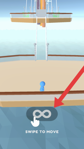 1、低多边形美术风格,属于通过滑动操作控制角色在轮船场景移动的玩法,是新手引导或操作说明界面。
