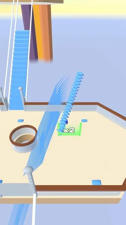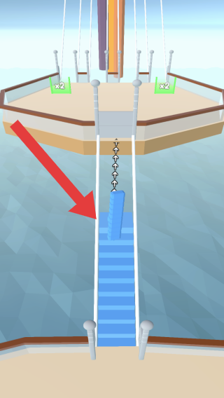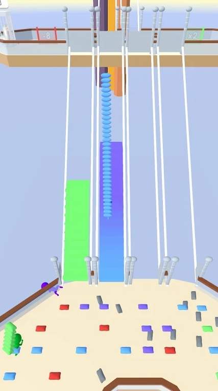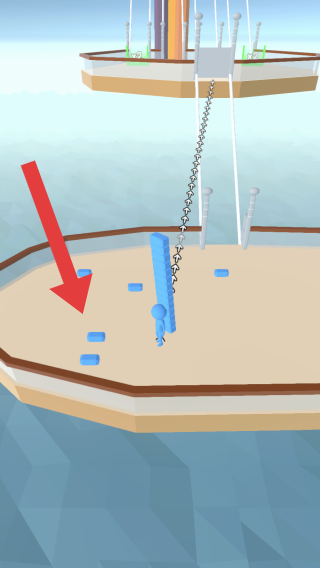 2、属于通过操作角色在甲板上移动、与场景互动如躲避链条、收集方块的玩法,是关卡场景,体现其轻松的闯关或收集类特质。