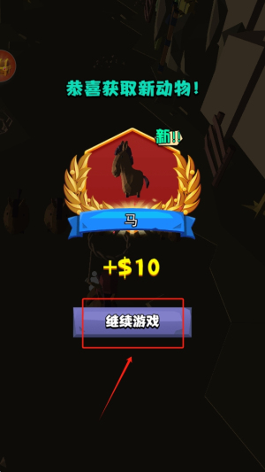 4、在获得新动物的奖励界面,点击“继续游戏”按钮,保持游戏进度。