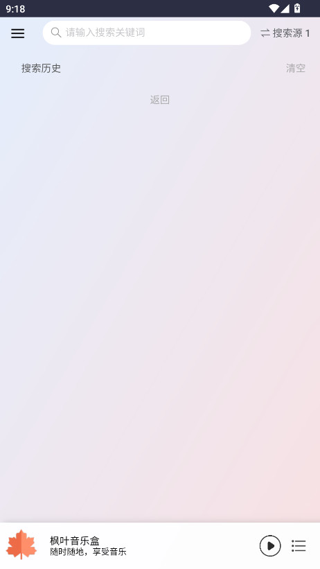 1.打开枫叶音乐盒,在首页上方的搜索框输入关键字即可找到自己喜欢的歌曲。
