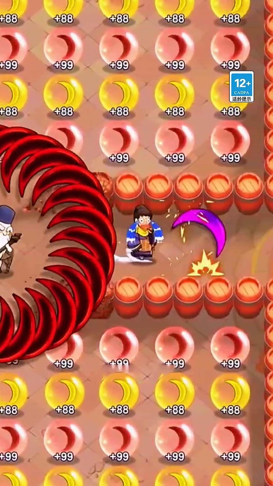 2、地上会掉不同颜色的飞刀,路过就能捡,高级飞刀伤害更高,尽量多拾取升级武器,打怪更轻松。