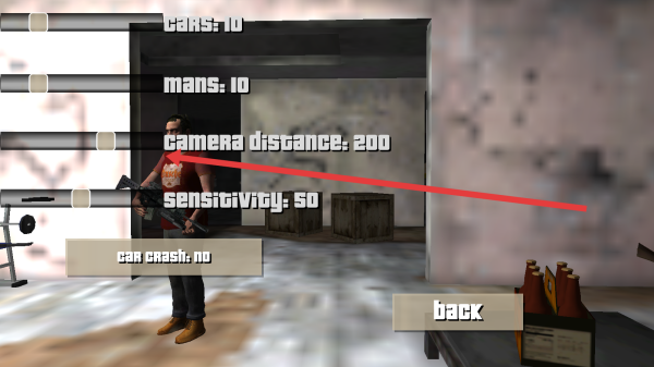 3、在设置界面可以查看cars-10,mans-10等参数并修改,了解游戏当前各项配置,点击back返回。