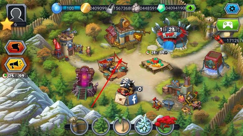 1、进入界面,看到充满奇幻元素的场景,有各种建筑和角色,点击行吗第一个,进入关卡选择界面。