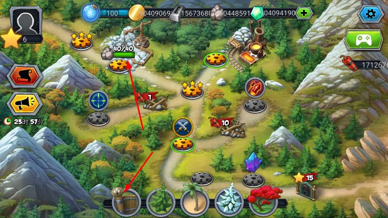 2、在关卡选择界面,选择要挑战的关卡关卡1,点击进入场景,上面位置显示拥有的资源数量,左侧显示角色信息,右侧显示各种功能按钮。