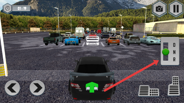 1、需要点击右侧挡位区,将驾驶的挡位切换至前进模式,配合方向与油门,操控车辆启动前行。