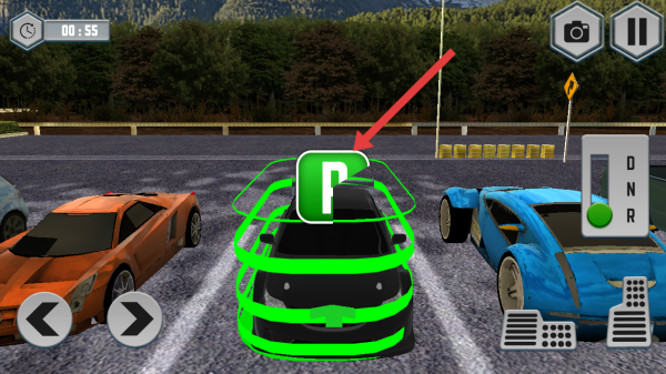 3、驾驶自己的车辆进入绿色轮廓的车位,需要等待车顶P标识完全加载出来,即成功完成停车。